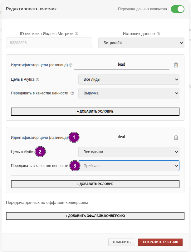 Файл:Настройки цели оффлайн-конверсии.png